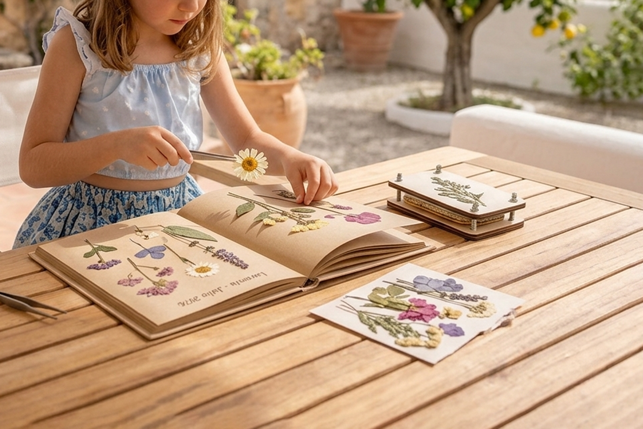 Una de las actividades más relajantes y educativas es la creación de un herbario. No se trata solo de recoger plantas, sino de observar su arquitectura.