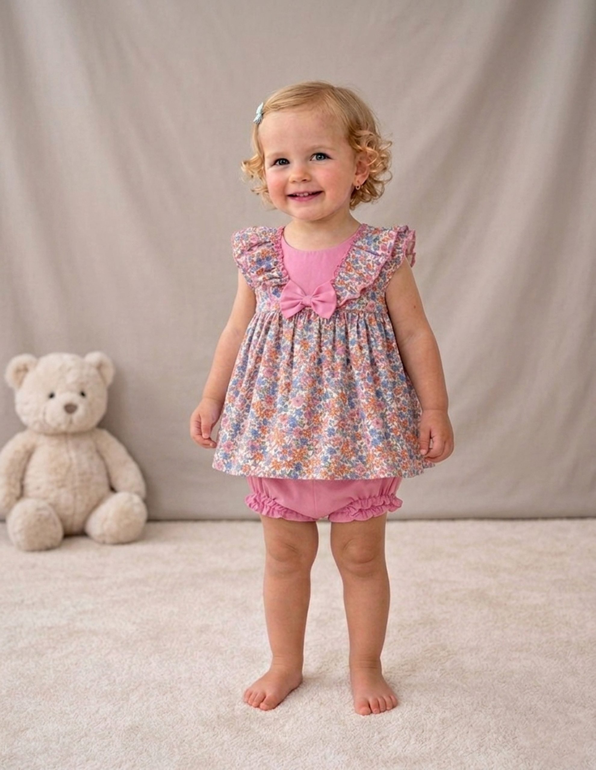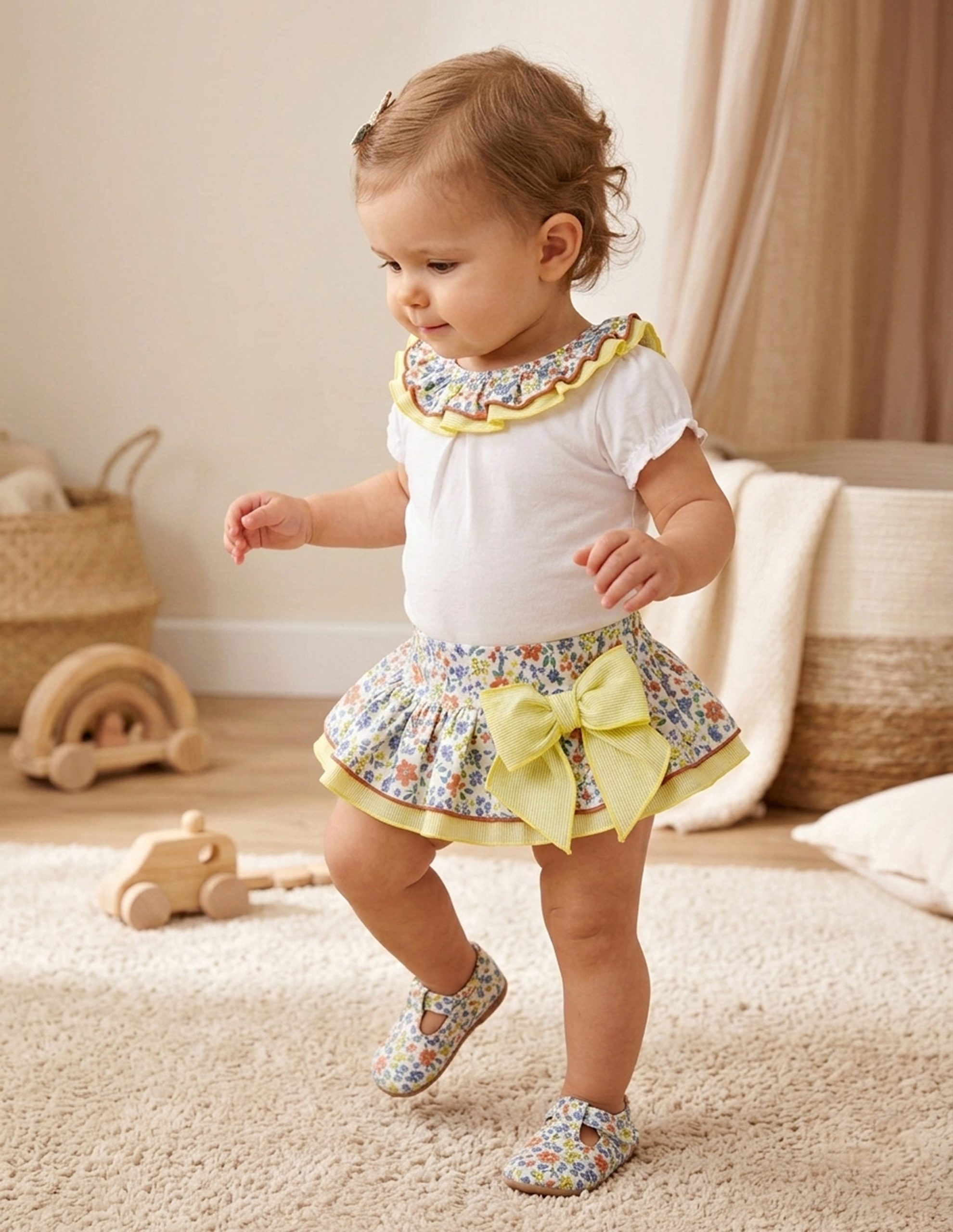 Cada pieza destaca por sus detalles únicos: volantes delicados, bordados suaves y lazos a juego que completan cada look. Una propuesta que combina comodidad y estilo romántico, pensada para que tu peque se mueva con libertad y luzca radiante en cada ocasión especial de esta temporada.